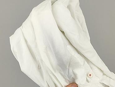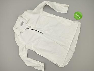 Biała damska bluzka Made in Italy, rozmiar M - Fason: luźny, lekko wydłużony tył (zaokrąglone wykończenie dołu), długi rękaw z szerokim mankietem - Kołnierzyk: klasyczny, ozdobiony subtelną lamówk...