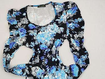Bluzka damska z długim rękawem w kwiaty - Fason: dopasowany, lekko marszczony z przodu i na plecach, podkreśla talię - Długość: do bioder - Rękaw: długi, prosty - Dekolt: okrągły - Wzór: gęsty, kw...
