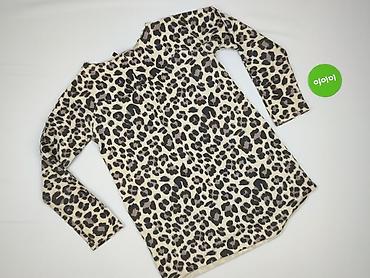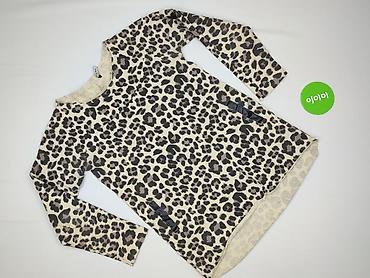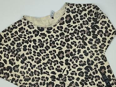 Bluzka damska z krótkim rękawem, wzór w beżowe „animal/abstract” plamki. - Krój: luźny, lekko wydłużony tył (asymetryczny dół), okrągły dekolt. - Rękawy z możliwością podpięcia na napy (zapinane g...