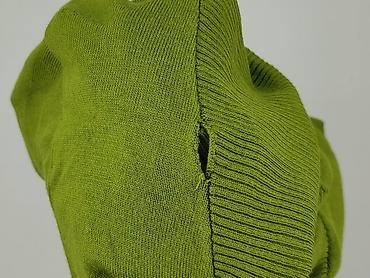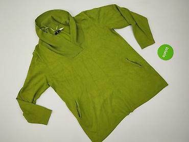 Zielony sweter damski z długim rękawem - Fason: klasyczny, dopasowany, długość do bioder - Dekolt: łódka - Rękawy: długie, zakończone szerokim ściągaczem - Splot/prążkowanie: przód z fakturowanym,...