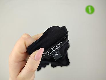 Czarny top damski marki Debenhams Collection w rozmiarze 14. Charakteryzuje się szerokimi, luźnymi rękawami typu nietoperz, które zwężają się ku mankietom. Dekolt jest okrągły i szeroki, a dół bluzki zakończony jest ściągaczem, co pozwala na swobodne ułożenie materiału. Top ma jednolity czarny kolor, co sprawia, że jest uniwersalnym elementem garderoby, łatwym do stylizacji na różne okazje. Jest to praktyczny wybór do codziennych i bardziej eleganckich zestawień.