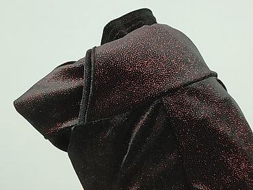 - Materiał: elastyczny welur z drobnym, połyskującym brokatem w odcieniu czerwieni/burgundu na czarnym tle; miękka podszewka na piersiach