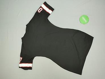 Czarna bluzka damska z elastycznej, plisowanej tkaniny - Fason: luźny, lekko oversize, z krótkimi rękawami typu kimono - Dekolt: okrągły - Wzór/struktura: drobne, wytłaczane prążki (crinkle), delik...