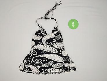 Czarna bluzka na ramiączkach z wzorem paisley - Krój: luźny top z dekoltem w kształcie litery V z przodu i z tyłu - Ramiączka: cienkie, podwójne, wiązane na supełki (możliwość lekkiej regulacji dł...Rozmiar: