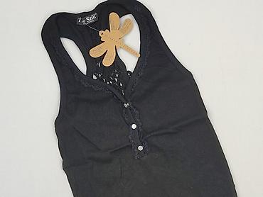 Czarna damska koszulka bez rękawów / top - Fason: klasyczny tank top z szerokimi ramiączkami, półokrągły dekolt, lekko zaokrąglony dół - Tył: głębsze wycięcie - Materiał: 95% wiskoza, 5% elastan –...
