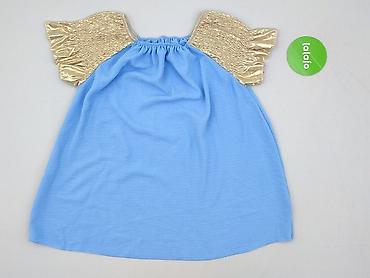 Sukienka damska z krótkim rękawem – błękitna z złotymi, marszczonymi rękawkami
