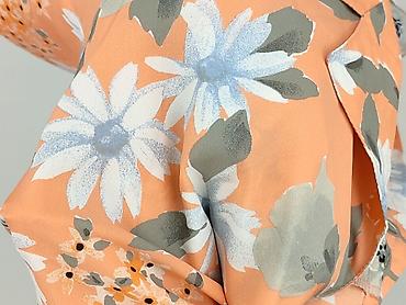 - Wzór/kolor: duże kwiaty w odcieniach bieli, błękitu i szarości na łososiowo-brzoskwiniowym tle