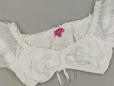 Biały krótki top damski Sinsay - Rozmiar: XL (z metki) - Krój: krótki/cropped, dopasowany pod biustem z lekkimi marszczeniami, dekolt w kształcie litery V z przodu i z tyłu - Rękawy: krótkie - Mat...