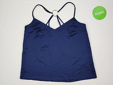 Bluzka damska bez rękawów - Kolor: jasny błękit z ciemnogranatową lamówką przy dekolcie i pachach - Rozmiar: L (EU L) - Fason: luźna, lekko marszczona z przodu, dekolt w kształcie litery V z małym...