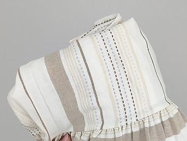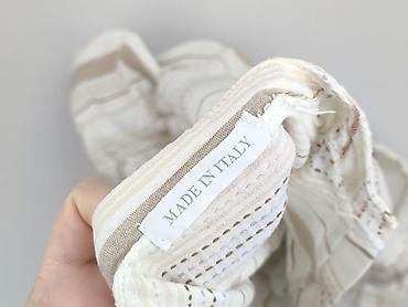 - Wzór: poziome i pionowe pasy w odcieniach ecru, beżu i jasnego brązu, dekoracyjne ażurowe wstawki