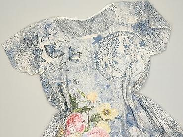 Bluzka/tunika damska z długim rękawem – wzór w odcieniach niebieskiego - Fason: prosta tunika z okrągłym dekoltem, długość zakrywająca biodra - Rękawy: długie - Wzór: gęsty roślinny/ornamentalny p...