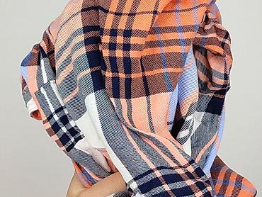 - Wzór: duża krata w odcieniach łososiowym/pomarańczowym, granatowym, szarym, białym i jasnoniebieskim