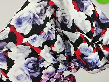 - Wzór: gęsty, kwiatowy print w odcieniach fioletu, bieli i czerwieni na czarnym tle