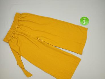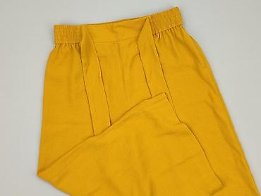 Żółte spodnie damskie typu casual - Kolor: intensywny żółty - Fason: proste nogawki, długość 7/8–ankle (luźniejszy krój) - Talia: wysoka z szeroką, elastyczną gumą dla wygody; szlufki na pasek - K...