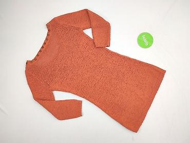 Sweter tunikowy damski, rozmiar S - Krój: długa tunika z długim rękawem - Dzianina melanżowa w dwóch kolorach: kremowy i jasny brąz, ułożone w duże bloki kolorystyczne - Dekolt w serek z efektowny...
