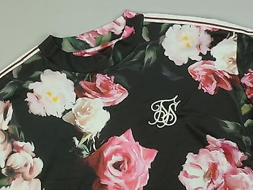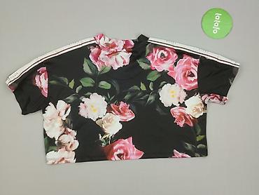 Bluzka damska Sinsay, rozmiar S. - Krótki fason (crop top) z krótkim rękawem - Niebieski nadruk w stylu tie-dye z białymi stokrotkami - Cienka, lekko prześwitująca siateczkowa dzianina - Ozdobne, ...