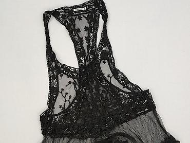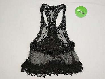 Czarna koronkowa bluzka bez rękawów – damska - Fason: bez rękawów, delikatnie zabudowany dekolt - Tkanina: ażurowa koronka z motywem kwiatów; pod spodem gładka, miękka podszewka - Skład (z metki):...