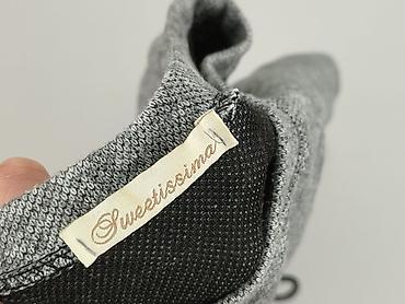 Miękka, elastyczna tkanina zapewnia wygodę, a prosty krój sprawdzi się na co dzień i na wyjścia. Kolor: szary melanż z czarno‑srebrnymi cekinami na kieszeniach. Na metce marka: Sweetissima. Made in Italy. Na jednym z rękawów widoczne lekkie przebarwienie (pokazane na zdjęciu). Idealna dla kobiety, nie dla niemowlęcia. Używana.