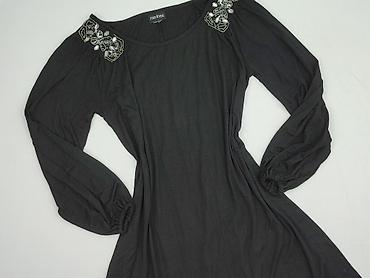 Czarna sukienka/tunika z długim rękawem - Klasyczny, prosty krój lekko rozszerzany ku dołowi - Okrągły dekolt - Miękki, elastyczny dzianinowy materiał (prawdopodobnie bawełna z domieszką elastanu)...