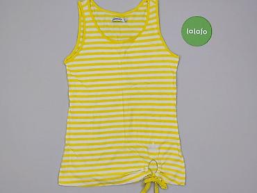 Koszulka bezrękawnik w paski - Wzór: poziome pasy w kolorze żółtym i oliwkowo‑szarym - Krój: bez rękawów, okrągły dekolt, lekko przedłużony dół - Rozmiar z metki: 48/50 - Skład materiału: 65% bawe...