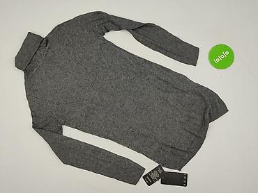 Szary sweter damski z golfem półokrągłym i długim rękawem. - Dzianina o wyraźnym, falistym splocie na całej powierzchni - Skład z metki: 30% wełna, 70% akryl - Grubszy, elastyczny ściągacz u dołu ...