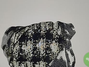 - Przód: wielokolorowy nadruk w stylu patchwork/abstrakcyjna pepitka (odcienie czerni, bieli, zieleni i turkusu)