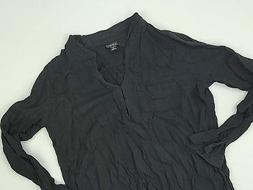 Bluzka damska AMISU, rozmiar M - Kolor: czarny w kwiatowy nadruk (pastelowe odcienie różu, kremu i zieleni) - Fason: luźniejszy krój, długie rękawy, stójka/przyszyta stójka przy dekolcie - Materiał...