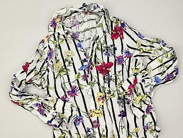 Bluzka damska AMISU, rozmiar M - Krój: lekka, zwiewna bluzka z krótkim rękawem - Zapięcie: guziki z przodu - Dół: wiązanie na supeł - Dekolt: zaokrąglony - Wzór: wielobarwny, kwiatowy nadruk na bi...