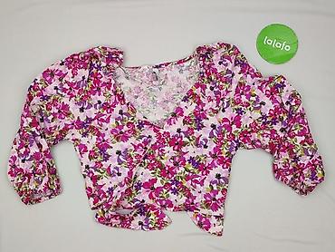 Bluzka damska AMISU, rozmiar M - Krój: lekka, zwiewna bluzka z krótkim rękawem - Zapięcie: guziki z przodu - Dół: wiązanie na supeł - Dekolt: zaokrąglony - Wzór: wielobarwny, kwiatowy nadruk na bi...