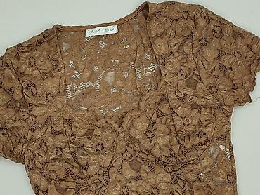 Bolero damskie Amisu - Krój: krótkie bolerko, bez zapięcia, z szeroką prążkowaną listwą przy krawędziach - Rozmiar z metki: S - Kolor: czarny - Materiał: miękka, ażurowa/siatkowa dzianina z puszki...
