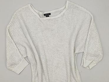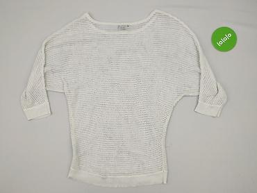 Sweter damski, biały, dzianina ażurowa - Krój: luźny, z obniżoną linią ramion - Dekolt: głęboki, zaokrąglony - Rękawy: długie, zakończone ściągaczami - Dół: lekko ściągany - Materiał: miękka, prze...