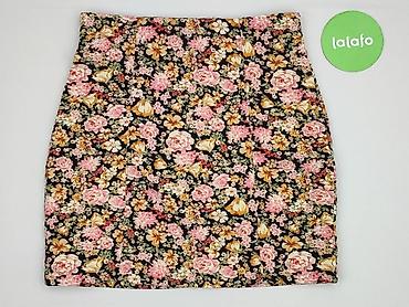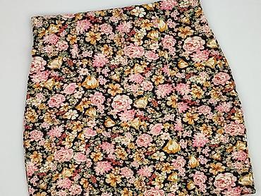 Spódnica damska AMISU, rozmiar EU 38 (US/CA 8). - Fason: ołówkowy, z wysoką talią; długość ponad kolano. - Wzór: gęsty, kwiatowy print w odcieniach różu, kremu i musztardy na czarnym tle. - M...