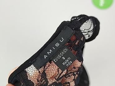 Top damski AMISU, rozmiar XS. - Krój: krótki crop top bez rękawów, okrągły dekolt - Kolor: czarny - Materiał: elastyczna dzianina z tłoczonym, geometrycznym wzorem (labirynt/grecki meander) na cał...