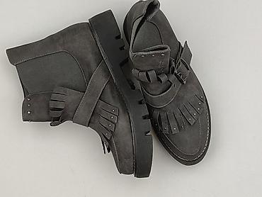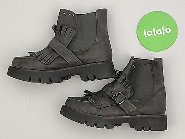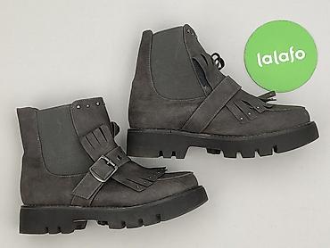 Botki damskie z frędzlami i klamrą, szare, rozmiar 36