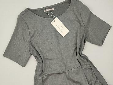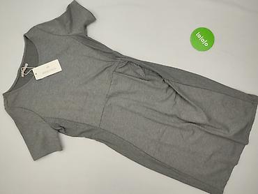 Szara sukienka damska, rozmiar 40 - Fason: prosty, dzianinowy, z krótkim rękawem typu kimono; delikatne zaszewki modelujące na biuście - Długość: midi (za kolano, zależnie od wzrostu) - Dekolt: łó...