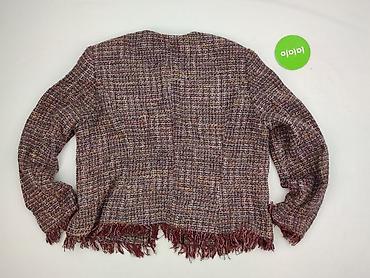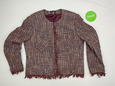 Damski żakiet tweedowy, rozmiar 38 - Krój: lekko taliowany, z klasycznym kołnierzem i długim rękawem - Zapięcie: 4 guziki z przodu - Tkanina o fakturze tweedu, melanż jesiennych odcieni (zieleń, r...