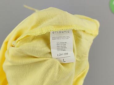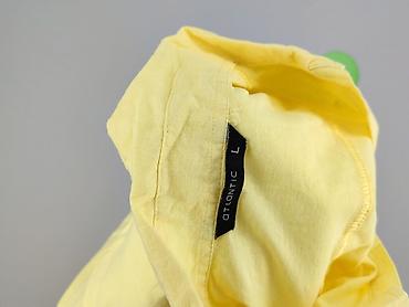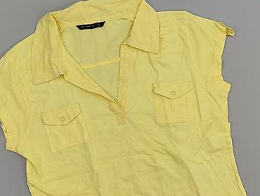 Żółta bluzka damska ExKedue, rozmiar L - Luźny, oversize’owy krój z krótkim rękawem - Okrągły dekolt - Delikatna, półtransparentna dzianina z subtelnym, żakardowym wzorem - Zaokrąglony dół z lekko...