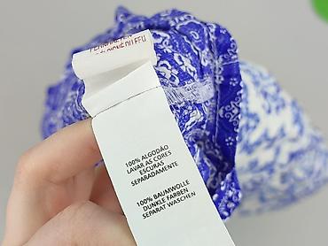 - Wzór: biało‑niebieski, orientalno‑kwiatowy print; kontrastowe, granatowe lamówki/przetasowania u góry i na dole