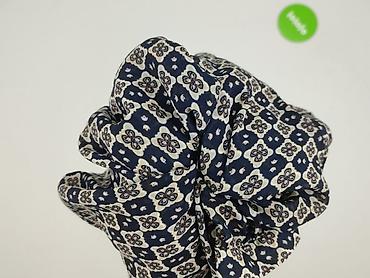- Wzór: drobna geometryczno-kwiatowa mozaika na granatowym tle (beż/biel/czerń)