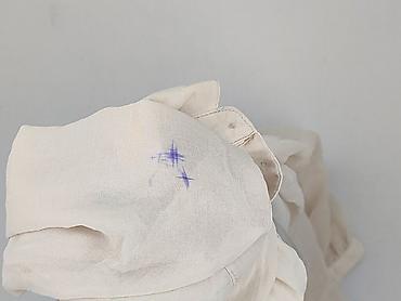 - Na jednym rękawie widoczny niebieskawy ślad po długopisie (zaznaczone na zdjęciu)