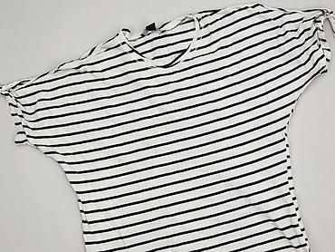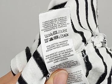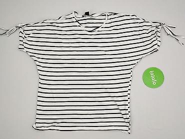 Bluzka damska w paski – rozmiar M - Krój: prosty, z okrągłym dekoltem - Rękawy: krótkie, z ozdobnymi wiązaniami po obu stronach - Wzór: biało‑czarne poziome paski (styl marynistyczny) - Materiał: ...