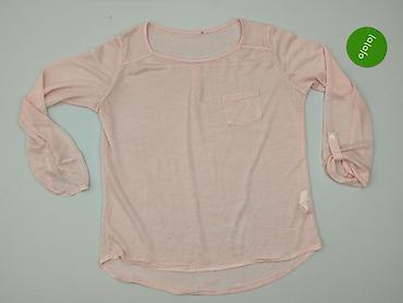Bluzka damska z dzianiny prążkowanej, kolor pudrowy róż. - Rozmiar: M (metka) - Krój: luźny, z opuszczoną linią ramion i rękawami 3/4 - Dekolt: łódkowy - Długość: sięga do bioder (krótszy, boxy...