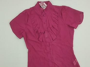 Bluzka damska Atmosphere - Kolor: fuksja/ciemny róż - Rozmiar z metki: 10/38 - Krój: taliowany, zapinana na guziki z przodu - Rękaw: krótki - Kołnierz: stójka - Dekolt: głębszy, z efektownymi zakł...