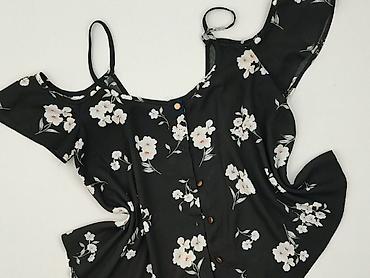Bluzka damska Atmosphere (Primark) na ramiączkach z odkrytymi ramionami i falbankowymi „motylkowymi” rękawkami. Czarny kolor w biały, kwiatowy wzór. Z przodu ozdobny rząd guzików. Krój lekko rozszerzany A-line, zaokrąglony dół, nieco dłuższy tył. Miękki, lejący materiał.
