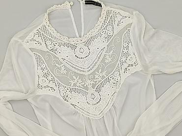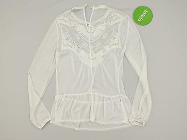 Biała bluzka damska BLUE, rozmiar 38. - Fason z długim rękawem, dół wykończony delikatną gumką. - Ozdobne, ażurowe koronki: wstawka na dekolcie z przodu i z tyłu oraz szerokie, koronkowe mankiety. ...