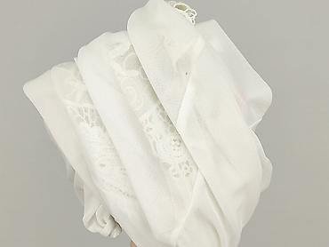 Bluzka damska biała z koronkową wstawką - Krój: luźny, lekko wydłużony tył, krótkie rękawki z delikatną falbanką - Dekolt: okrągły z wiązaniem na troczki - Góra: przezroczysta siateczka z kwiatowy...