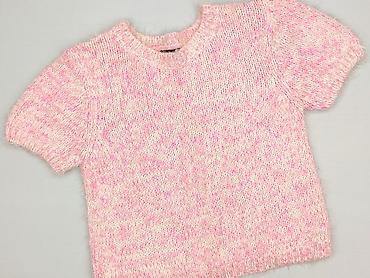 Sweter damski z krótkim rękawem marki Atmosphere, w odcieniach różu i bieli. Wykonany z mieszanki akrylu i nylonu, co zapewnia komfort noszenia. Posiada okrągły dekolt i krótkie rękawy, idealny na cieplejsze dni. Dół swetra oraz mankiety wykończone ściągaczem.