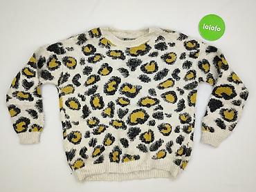 - Fason: klasyczny sweter z okrągłym dekoltem, długie rękawy