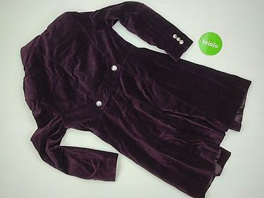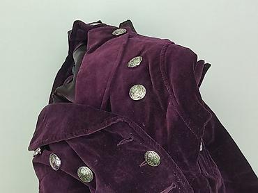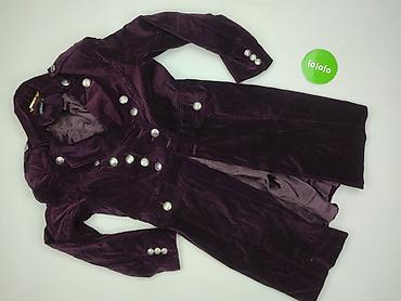 Płaszcz damski Just Play, rozmiar S - Kolor: głęboki fiolet/śliwka - Krój: taliowany, długość do połowy uda, lekkie rozkloszowanie dołu - Zapięcie: duże fioletowe guziki z przodu - Kołnierz: szero...