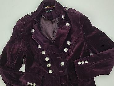 Damski płaszcz/krótka kurtka wełniana w kolorze głębokiego fioletu. - Materiał: 70% wełna, 30% bawełna; śliska podszewka w odcieniu fioletu - Rozmiar z metki: 8 (odpowiednik europejskiego 36 – pro...